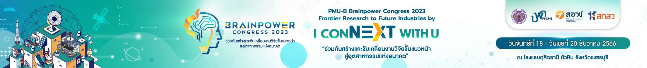 ภายใต้แนวคิด "Frontier Research to Future Industries by I conNEXT with U"ในวันที่ 18 - 20 ธันวาคม 2566 ณ โรงแรมดุสิตธานี หัวหินสอบถามข้อมูลเพิ่มเติมที่นางสาวภัทราพร ชื่นรุ่ง โทร. 02-109-5432 ต่อ 845อีเมล brainpower_pmub@nxpo.or.thดำเนินการโดยหน่วยบริหารและจัดการทุนด้านการพัฒนากำลังคน และทุนด้านการพัฒนาสถาบันอุดมศึกษา การวิจัยและการสร้างนวัตกรรม (บพค.)