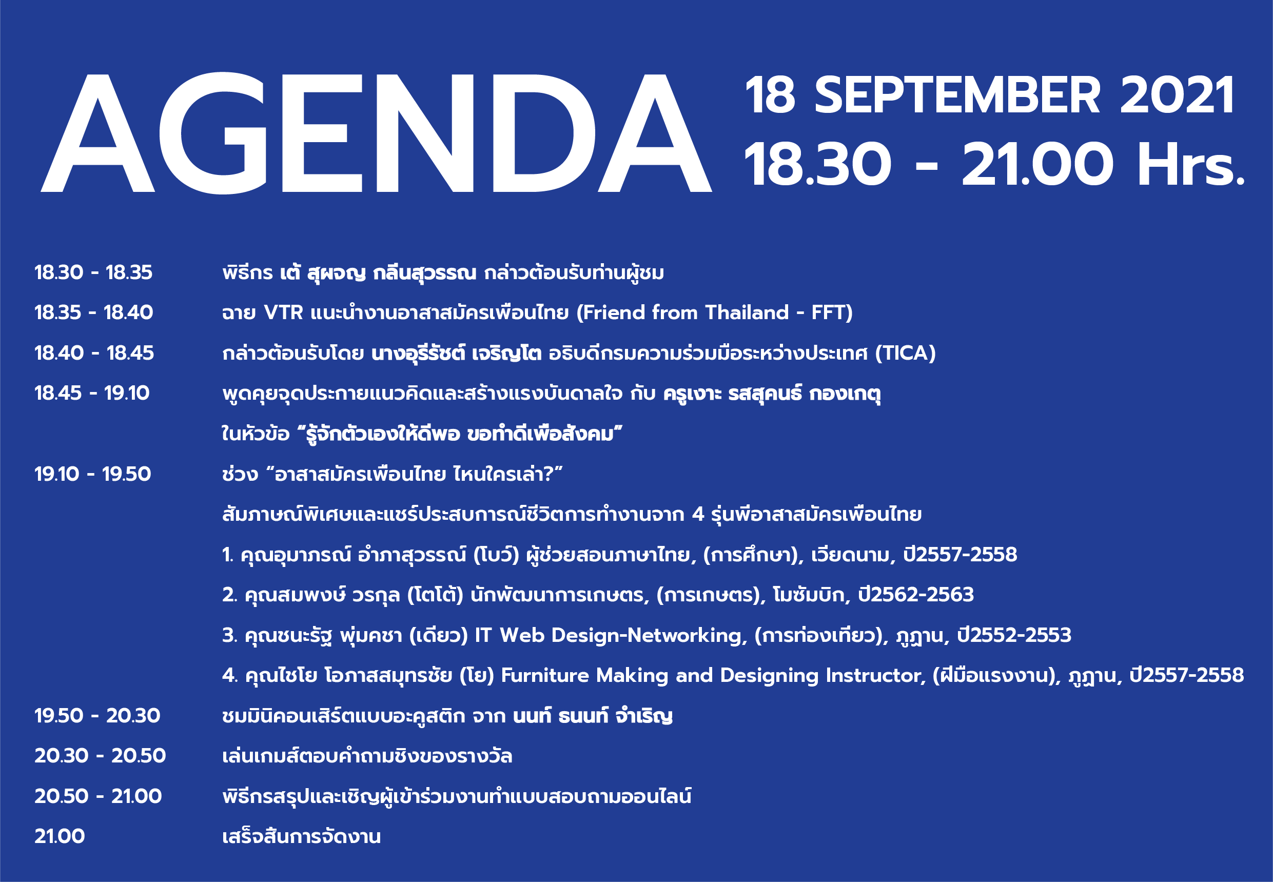 เจ้าหน้าที่อาสาสมัครเพื่อนไทย (FFT) ที่เคยไปปฏิบัติงาน (ระบุชื่อ*)